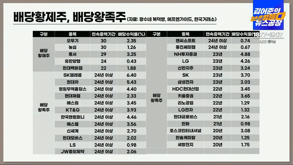 지속성으로 고른 ‘배당 황제·왕족’ 힌트